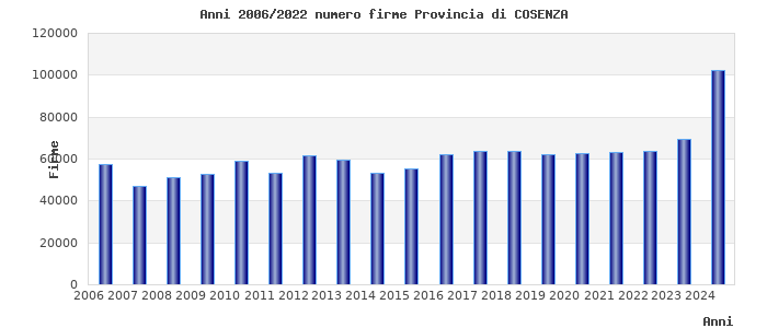 | Anno | Firme | Importi | Media | Enti |