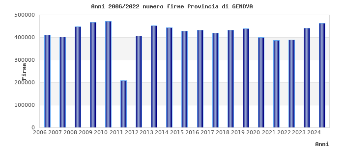 | Anno | Firme | Importi | Media | Enti |