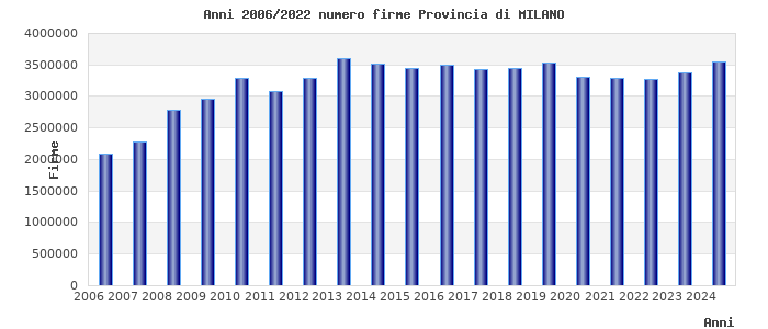 | Anno | Firme | Importi | Media | Enti |