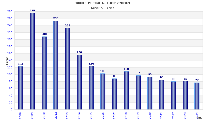 | Anno | Firme | Importi | Media | Naz. | Reg. | Prov. | Comu. |