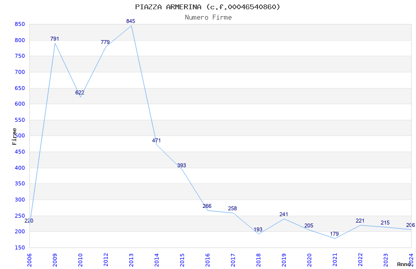 | 2024 | 206 | 4.033,25 | 19,58 | 13.301 | 818 | 38 | 3 |