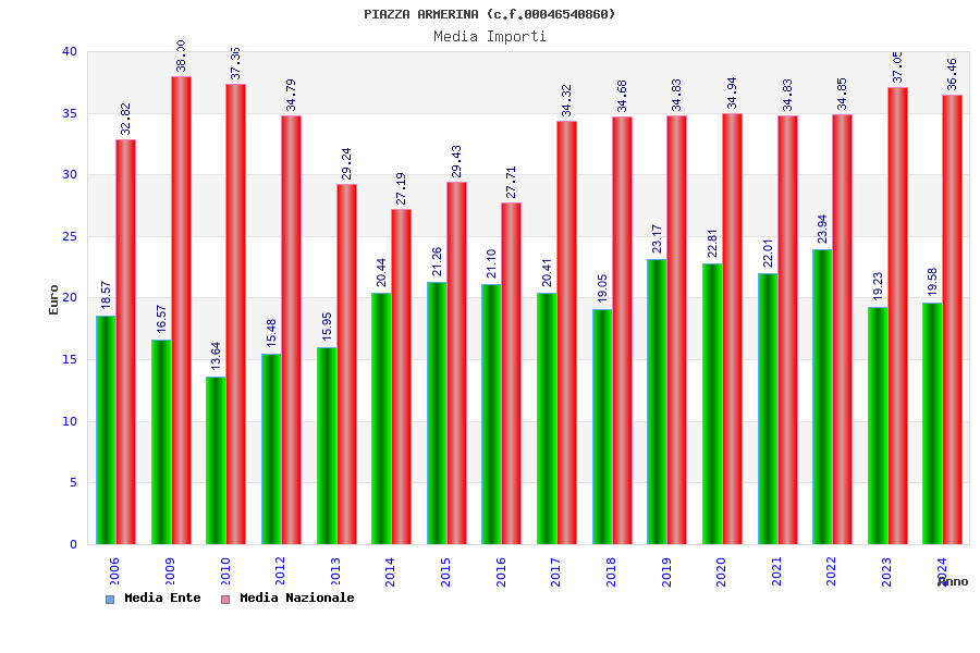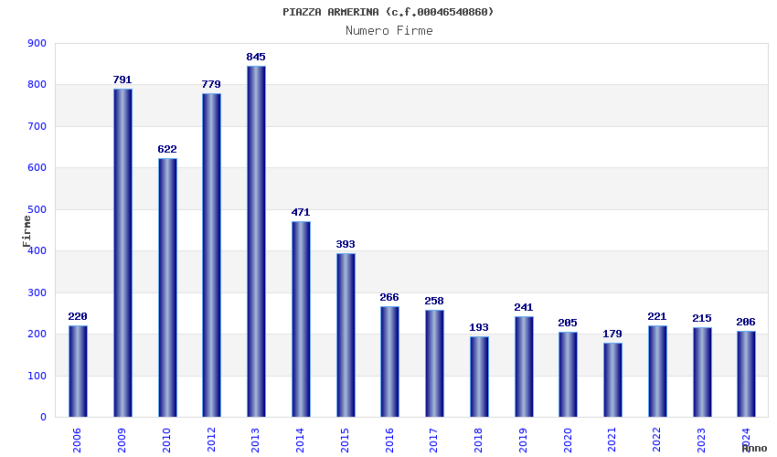 | Anno | Firme | Importi | Media | Naz. | Reg. | Prov. | Comu. |