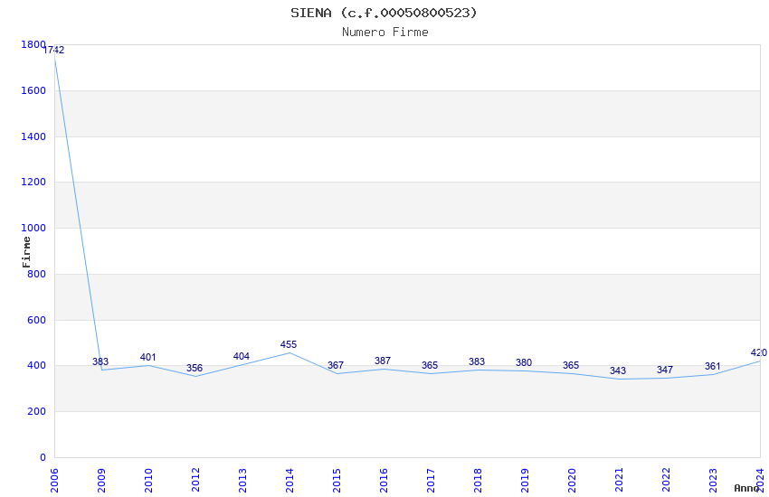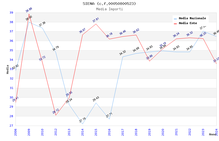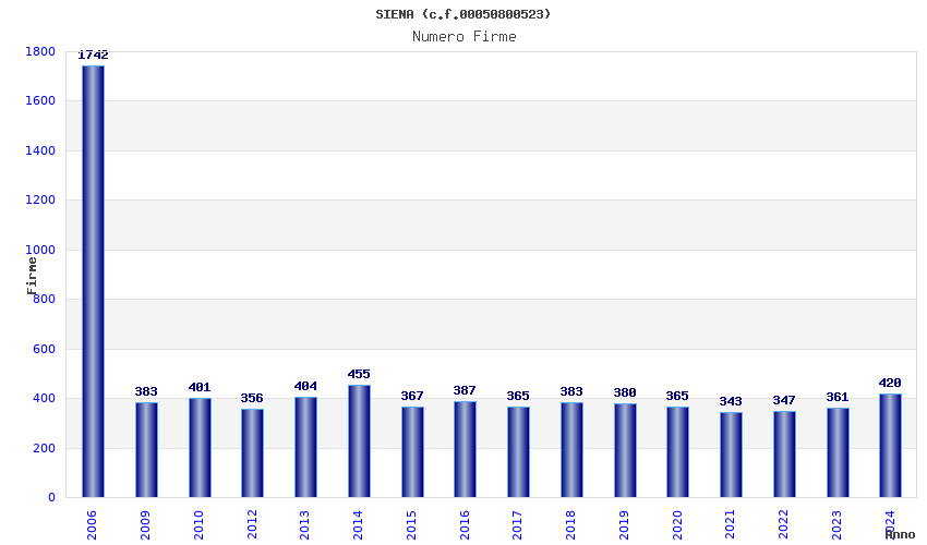 | Anno | Firme | Importi | Media | Naz. | Reg. | Prov. | Comu. |