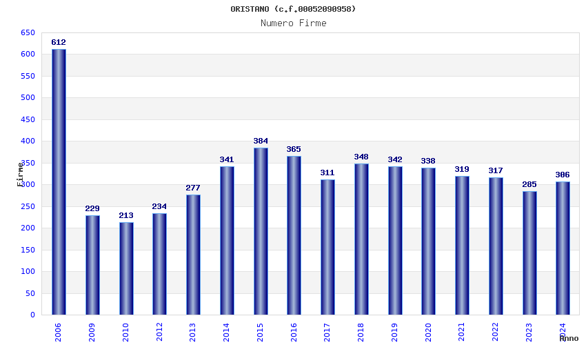 | Anno | Firme | Importi | Media | Naz. | Reg. | Prov. | Comu. |
