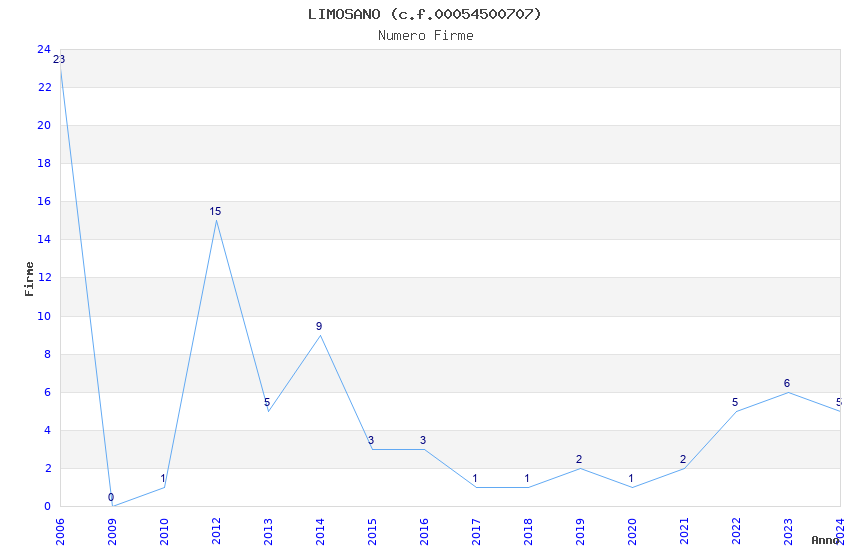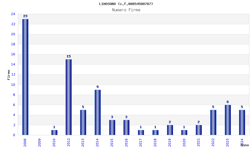 | Anno | Firme | Importi | Media | Naz. | Reg. | Prov. | Comu. |