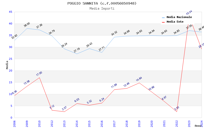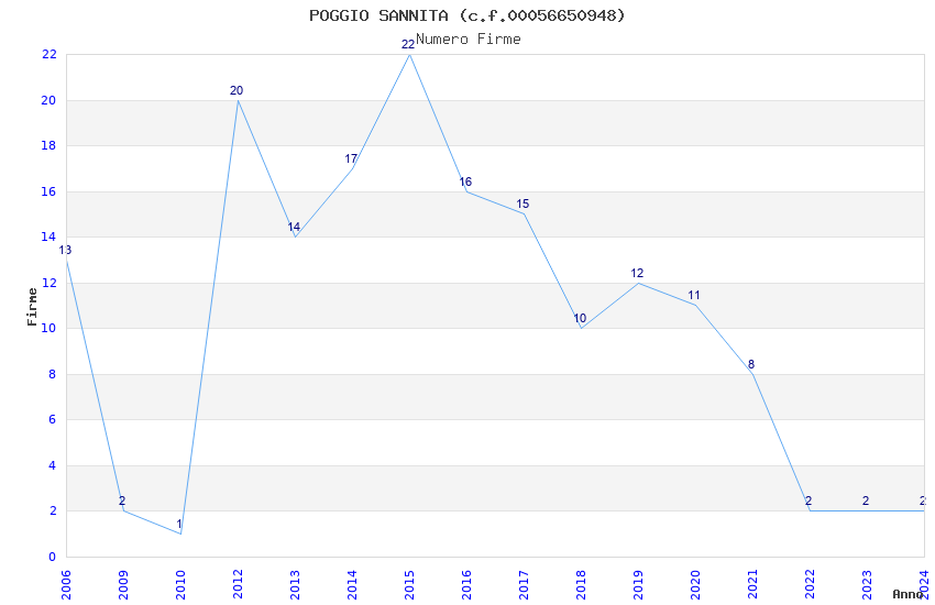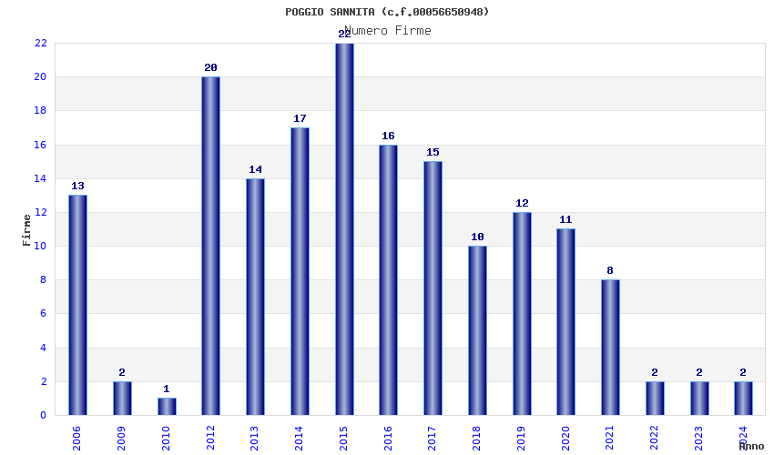 | Anno | Firme | Importi | Media | Naz. | Reg. | Prov. | Comu. |