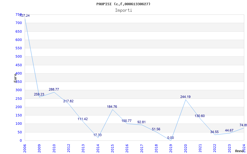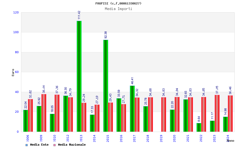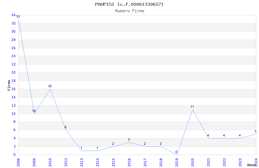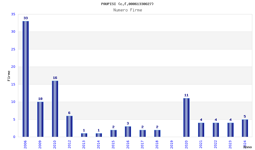 | Anno | Firme | Importi | Media | Naz. | Reg. | Prov. | Comu. |