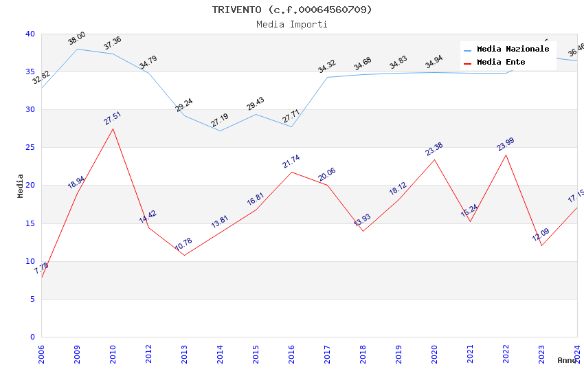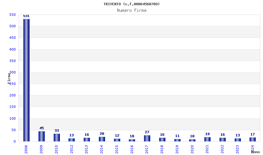 | Anno | Firme | Importi | Media | Naz. | Reg. | Prov. | Comu. |