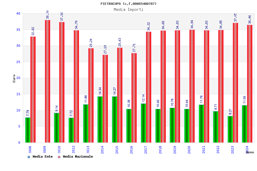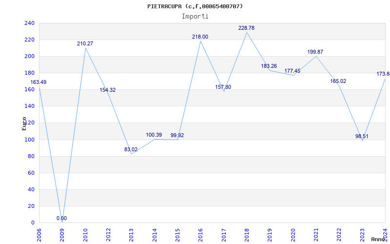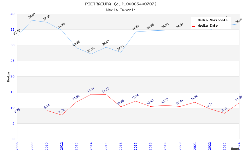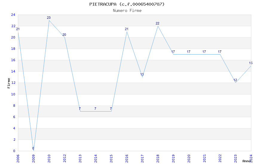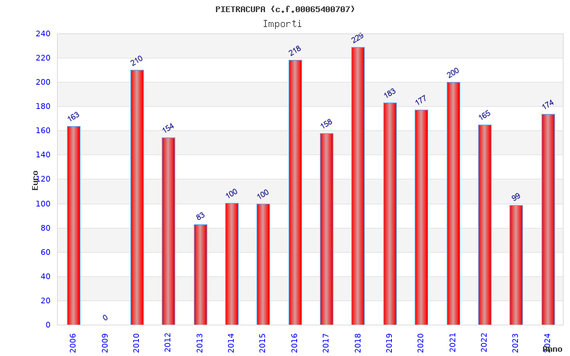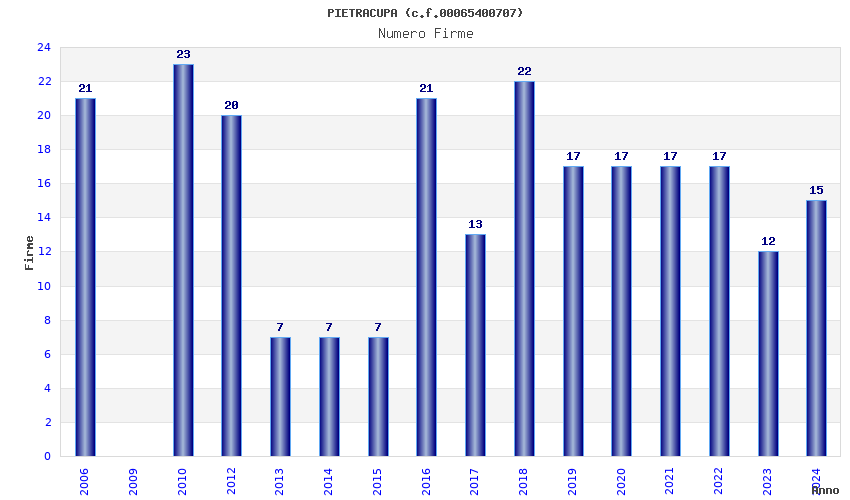 | Anno | Firme | Importi | Media | Naz. | Reg. | Prov. | Comu. |