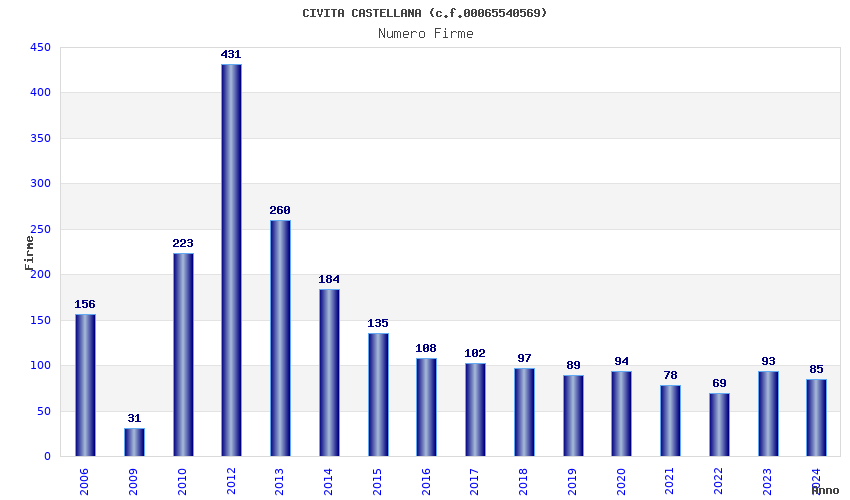 Anno Firme Importi Media Naz. Reg. Prov. Comu.
