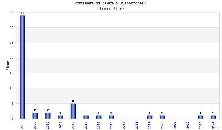 | Anno | Firme | Importi | Media | Naz. | Reg. | Prov. | Comu. |