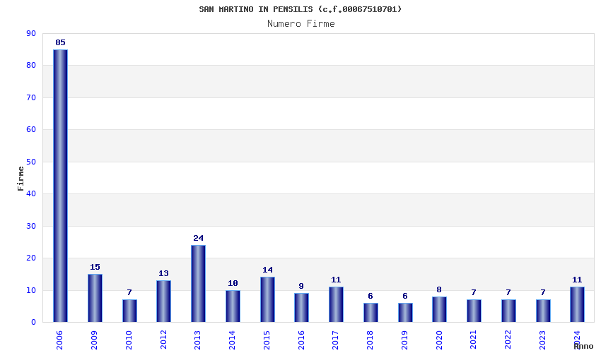 | Anno | Firme | Importi | Media | Naz. | Reg. | Prov. | Comu. |