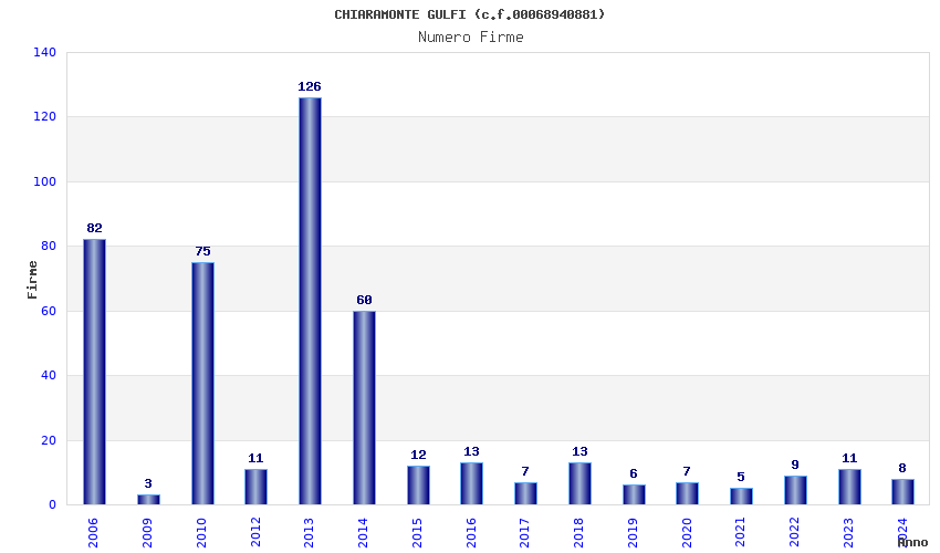 | Anno | Firme | Importi | Media | Naz. | Reg. | Prov. | Comu. |
