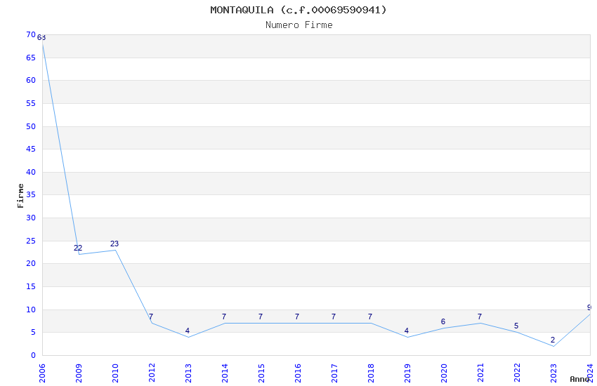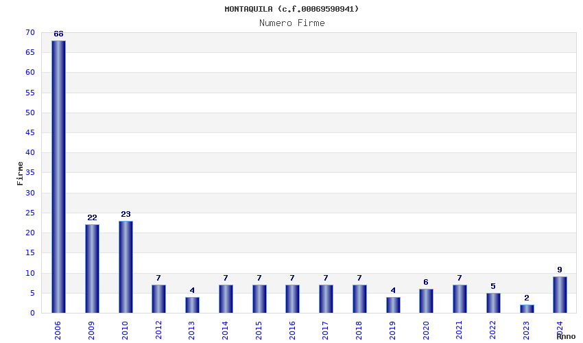 | Anno | Firme | Importi | Media | Naz. | Reg. | Prov. | Comu. |