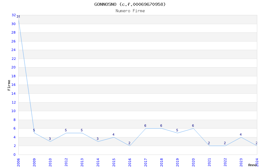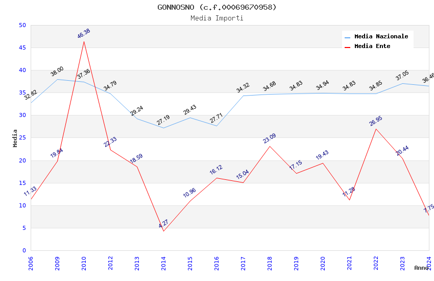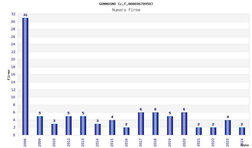 | Anno | Firme | Importi | Media | Naz. | Reg. | Prov. | Comu. |