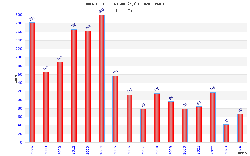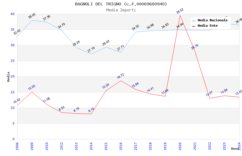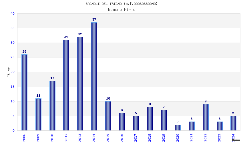 | Anno | Firme | Importi | Media | Naz. | Reg. | Prov. | Comu. |