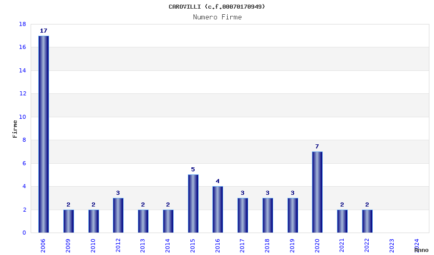 | Anno | Firme | Importi | Media | Naz. | Reg. | Prov. | Comu. |