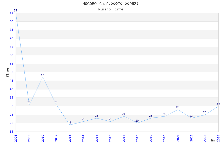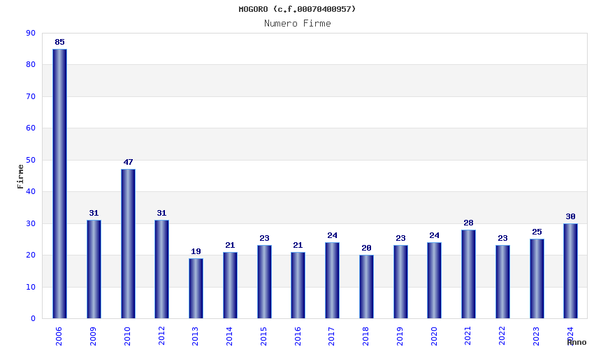 | Anno | Firme | Importi | Media | Naz. | Reg. | Prov. | Comu. |