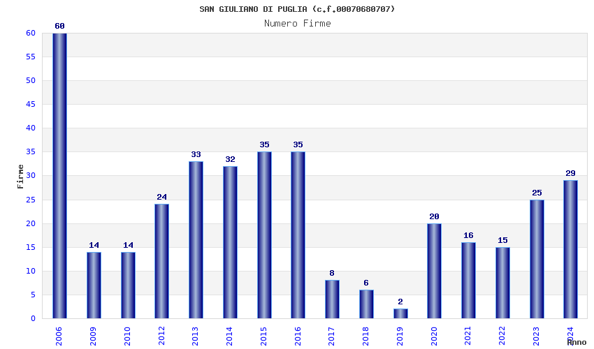 Anno Firme Importi Media Naz. Reg. Prov. Comu.