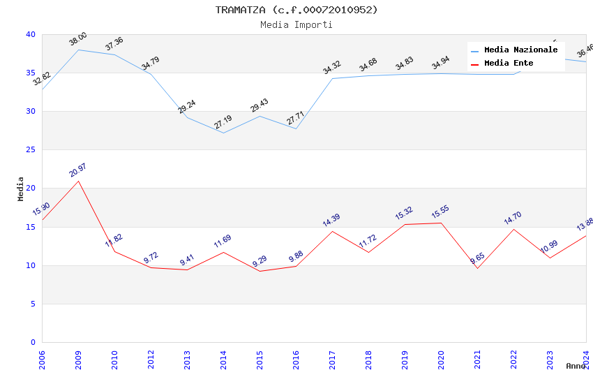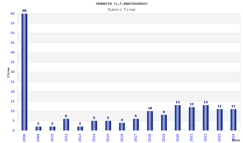 | Anno | Firme | Importi | Media | Naz. | Reg. | Prov. | Comu. |
