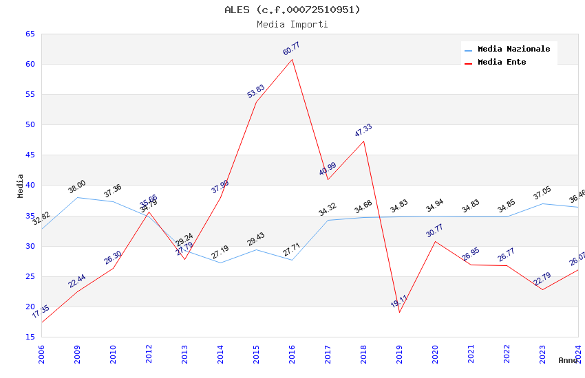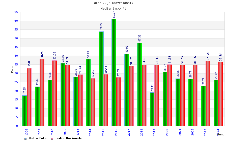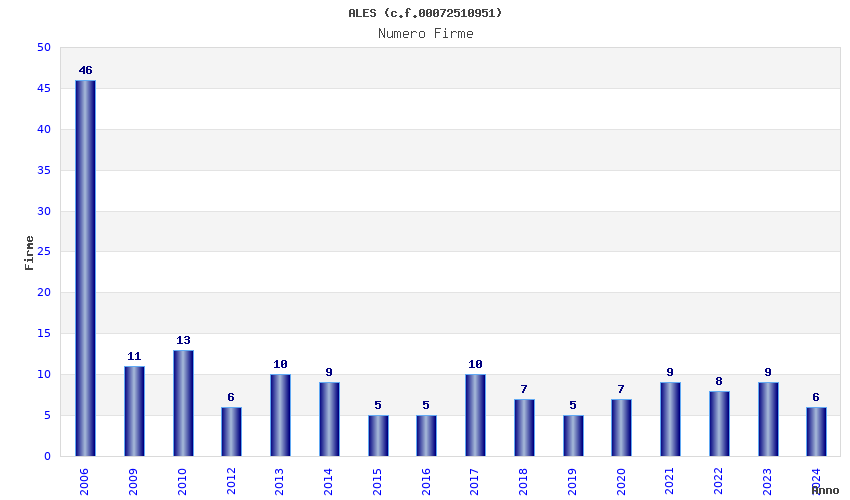 | Anno | Firme | Importi | Media | Naz. | Reg. | Prov. | Comu. |