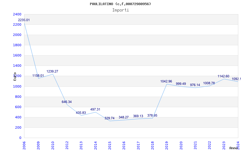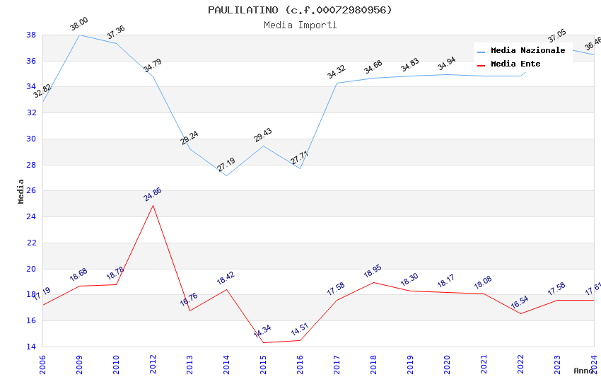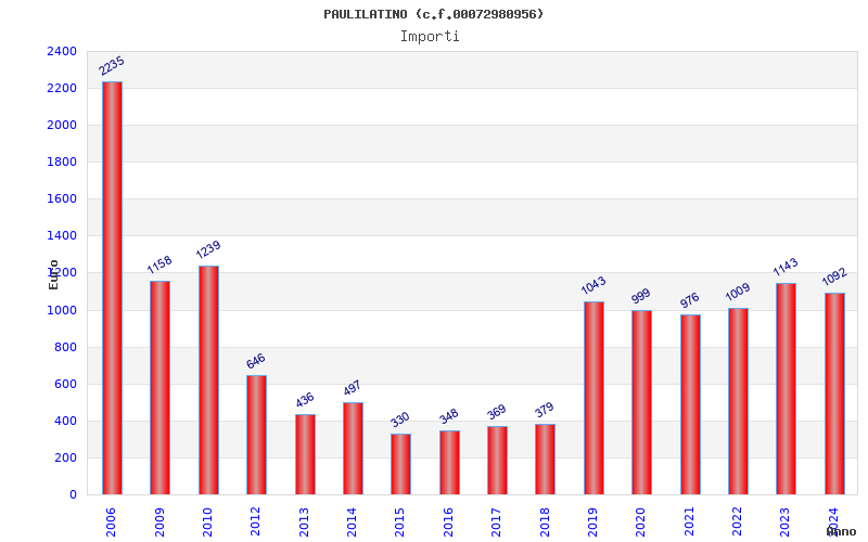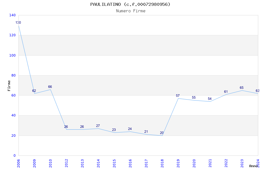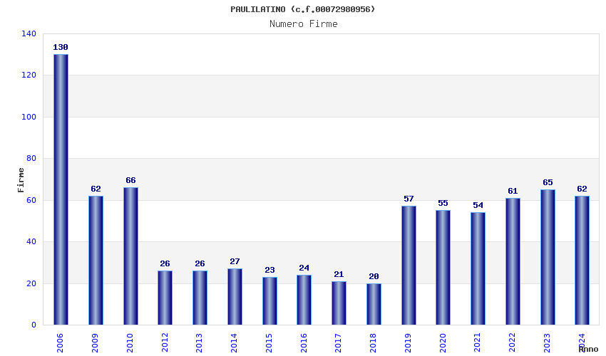 | Anno | Firme | Importi | Media | Naz. | Reg. | Prov. | Comu. |