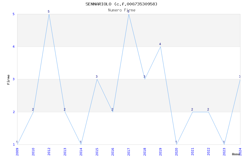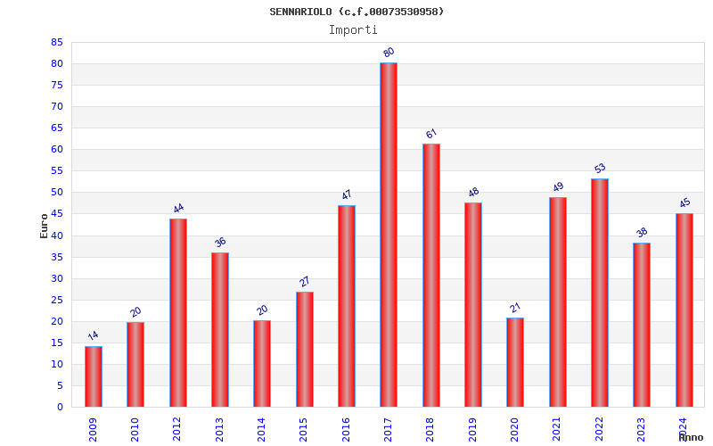| Anno | Firme | Importi | Media | Naz. | Reg. | Prov. | Comu. |