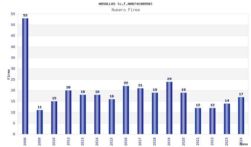 | Anno | Firme | Importi | Media | Naz. | Reg. | Prov. | Comu. |