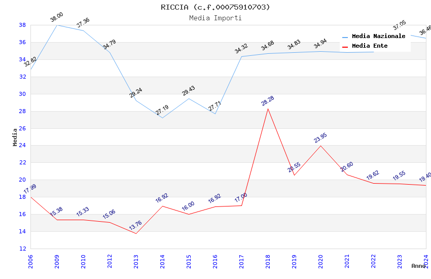 | Anno | Firme | Importi | Media | Naz. | Reg. | Prov. | Comu. |