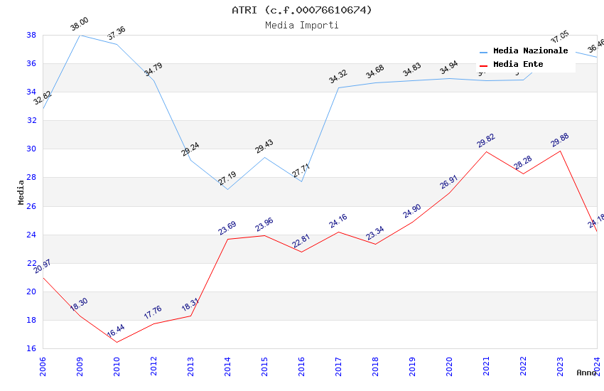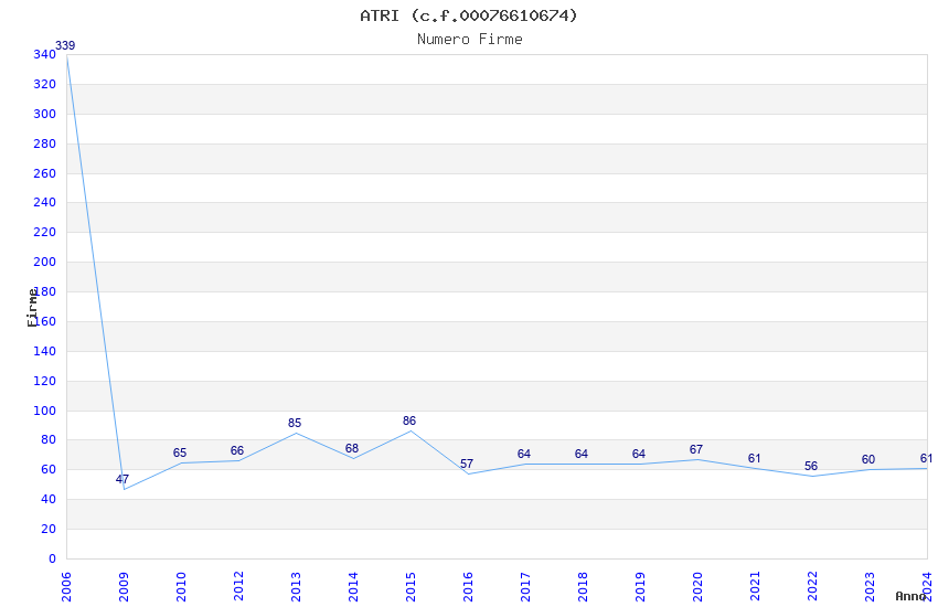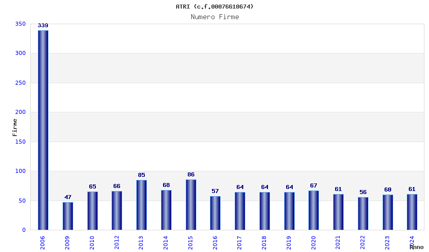 | Anno | Firme | Importi | Media | Naz. | Reg. | Prov. | Comu. |