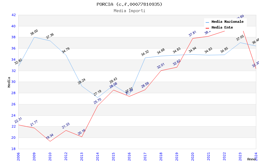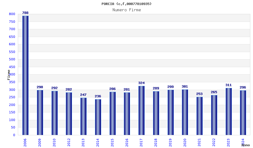 | Anno | Firme | Importi | Media | Naz. | Reg. | Prov. | Comu. |