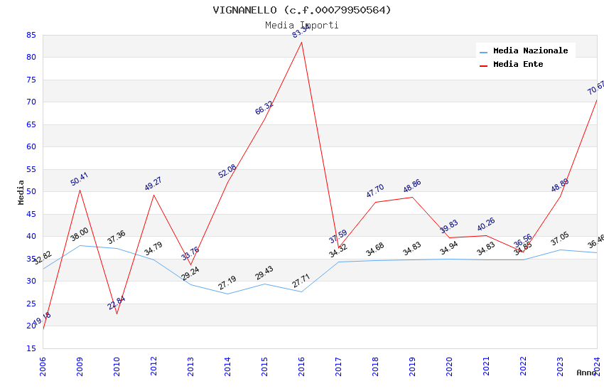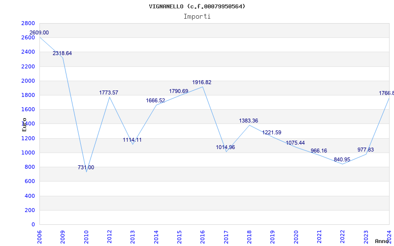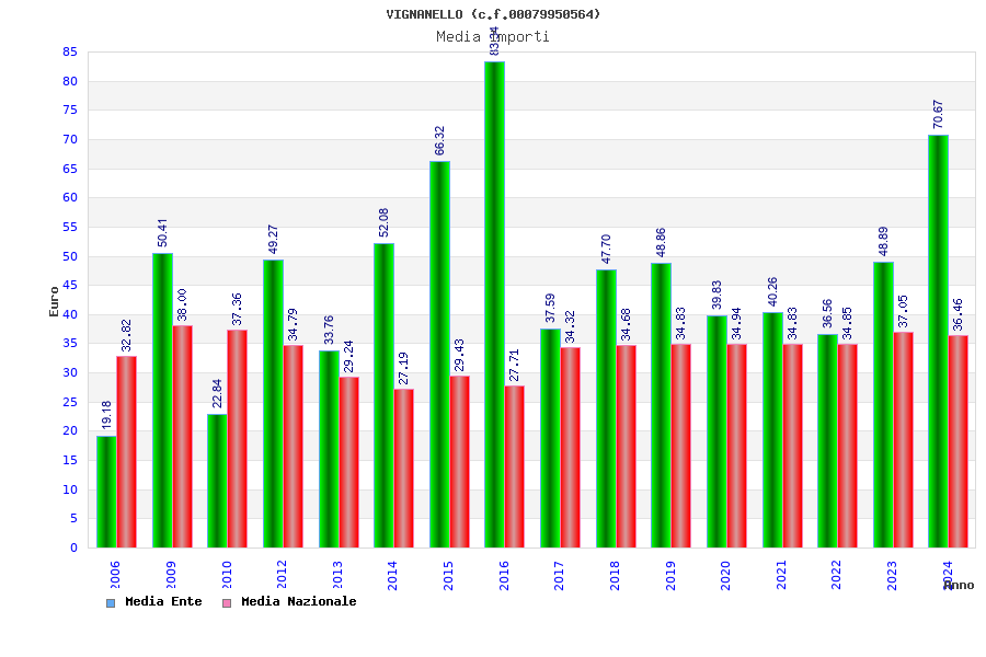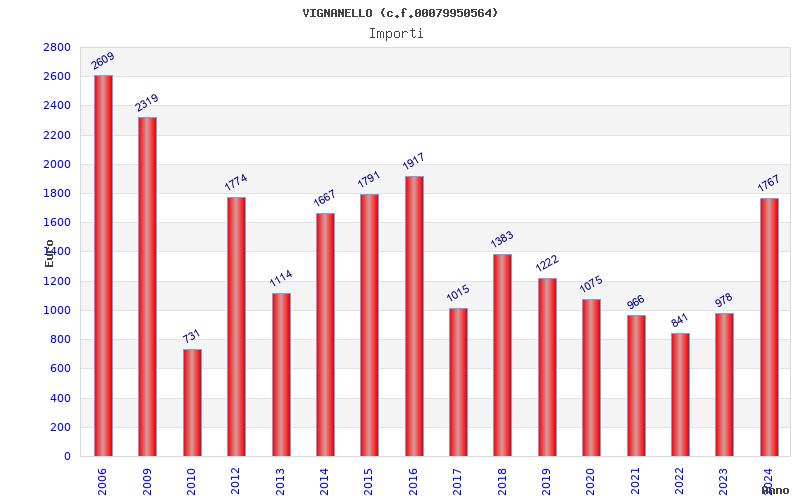 | Anno | Firme | Importi | Media | Naz. | Reg. | Prov. | Comu. |