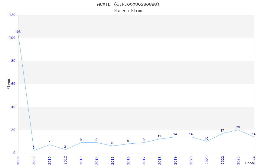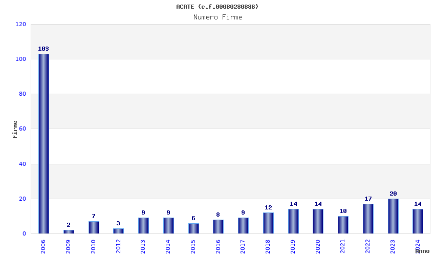 | Anno | Firme | Importi | Media | Naz. | Reg. | Prov. | Comu. |