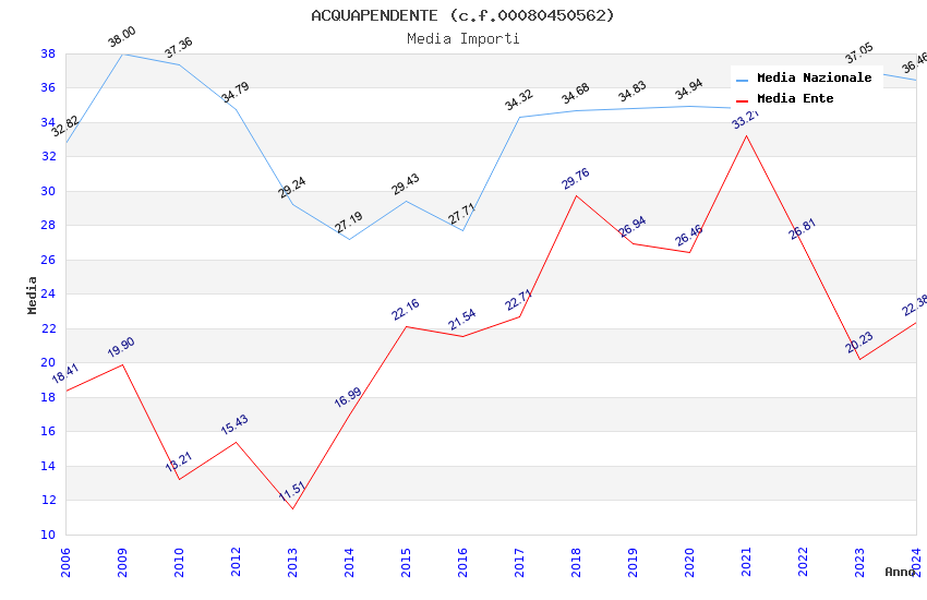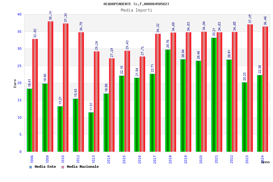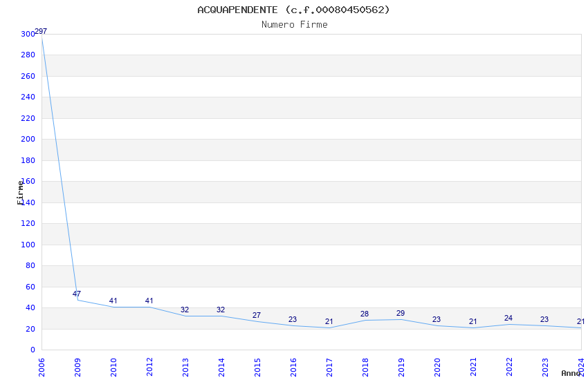| Anno | Firme | Importi | Media | Naz. | Reg. | Prov. | Comu. |