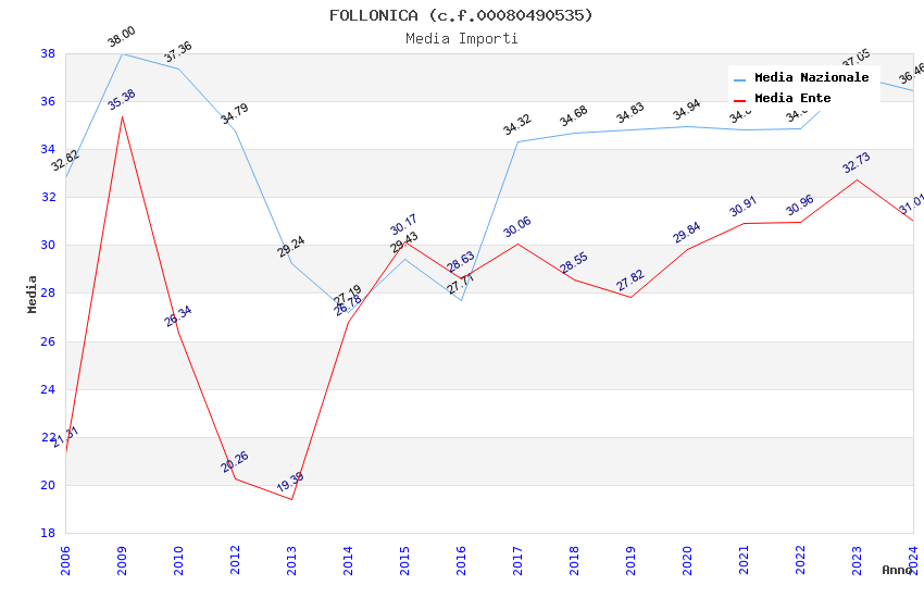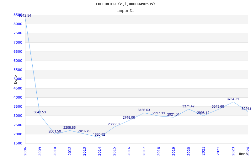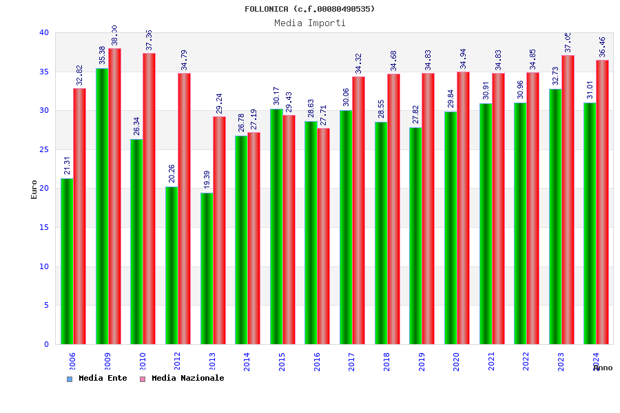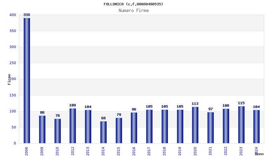 | Anno | Firme | Importi | Media | Naz. | Reg. | Prov. | Comu. |