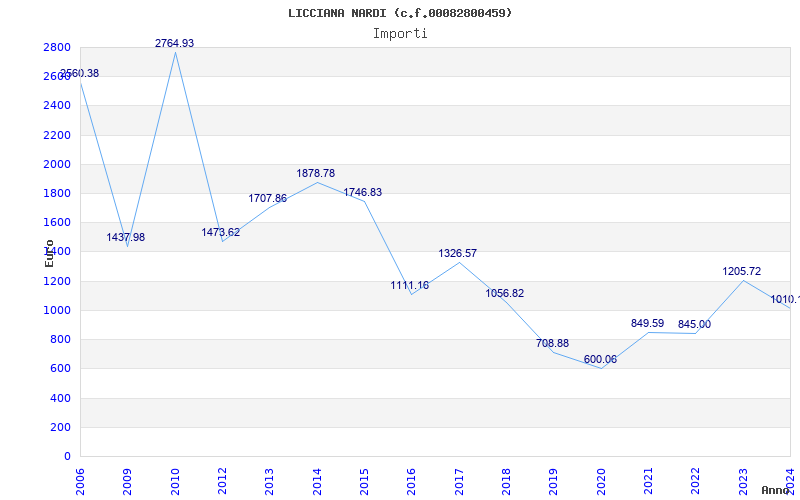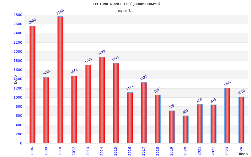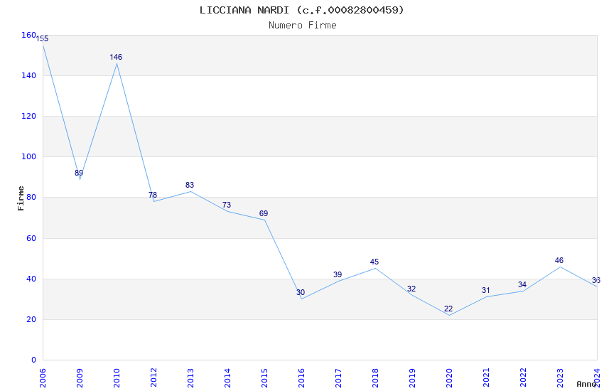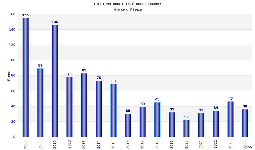 | Anno | Firme | Importi | Media | Naz. | Reg. | Prov. | Comu. |