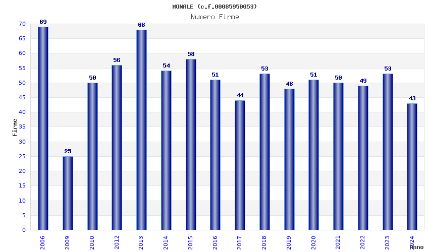 | Anno | Firme | Importi | Media | Naz. | Reg. | Prov. | Comu. |