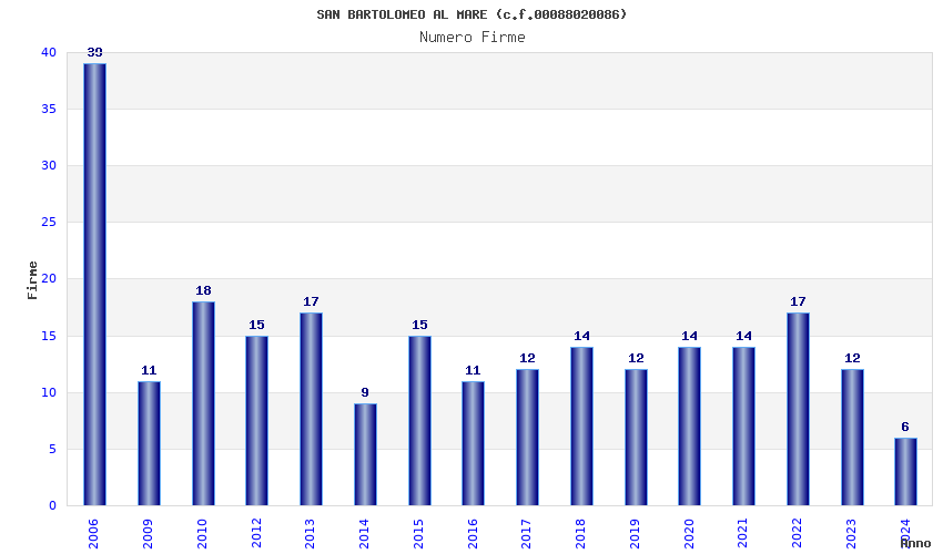 | Anno | Firme | Importi | Media | Naz. | Reg. | Prov. | Comu. |