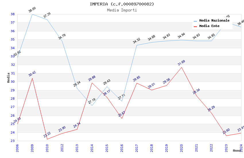 | Anno | Firme | Importi | Media | Naz. | Reg. | Prov. | Comu. |