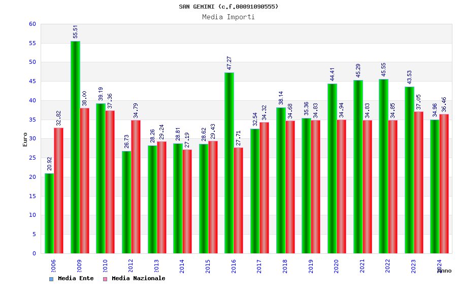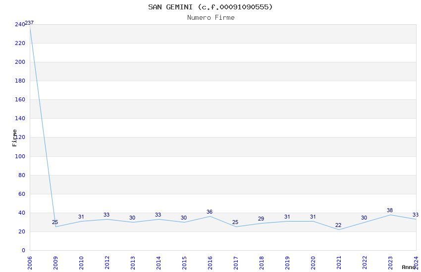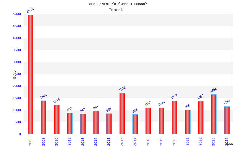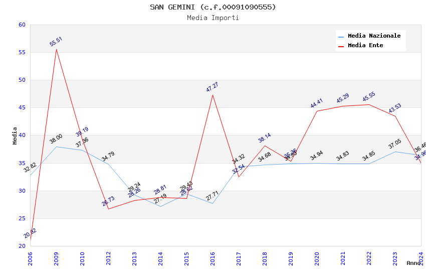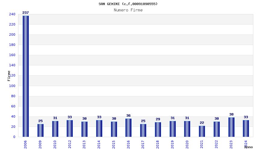 | Anno | Firme | Importi | Media | Naz. | Reg. | Prov. | Comu. |