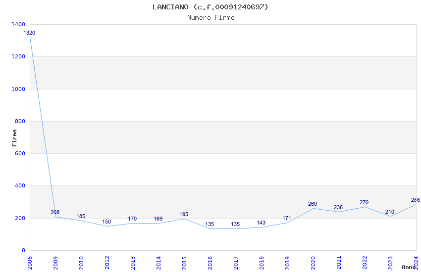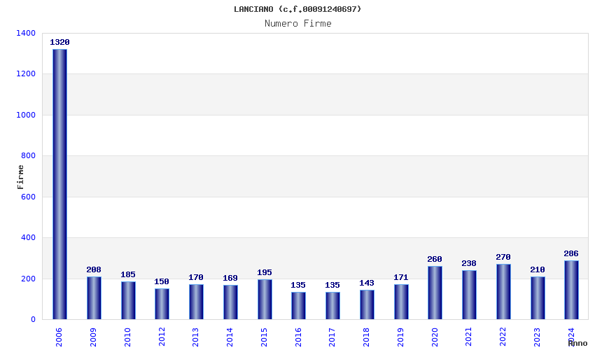 | Anno | Firme | Importi | Media | Naz. | Reg. | Prov. | Comu. |