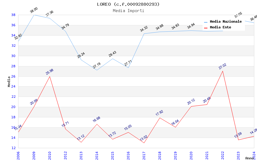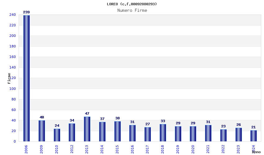 | Anno | Firme | Importi | Media | Naz. | Reg. | Prov. | Comu. |