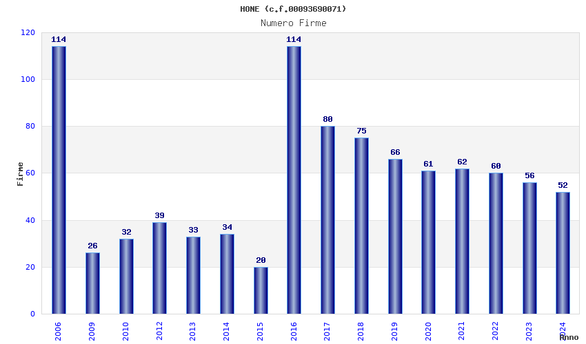 | 2016 | 114 | 2.681,10 | 23,52 | 18.666 | 60 | 60 | 1 |