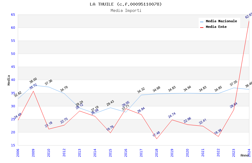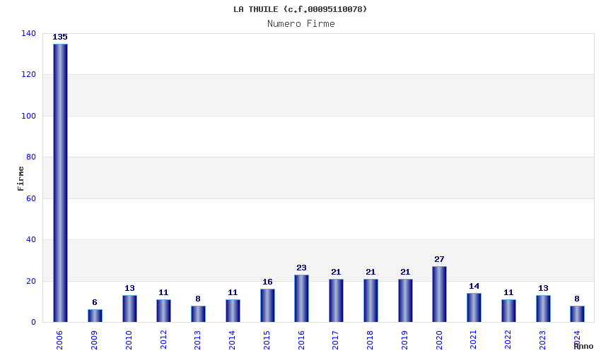 | Anno | Firme | Importi | Media | Naz. | Reg. | Prov. | Comu. |