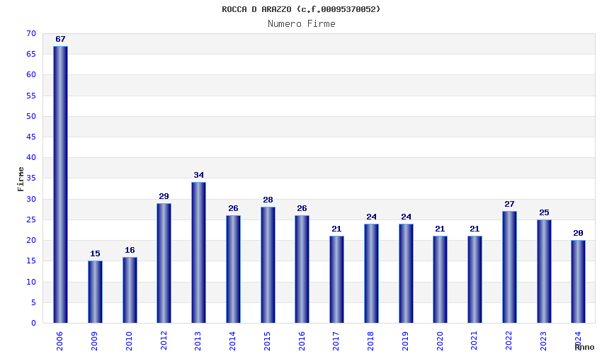 | Anno | Firme | Importi | Media | Naz. | Reg. | Prov. | Comu. |
