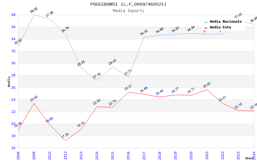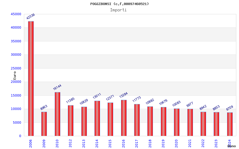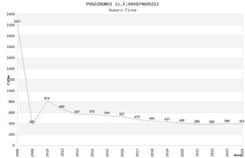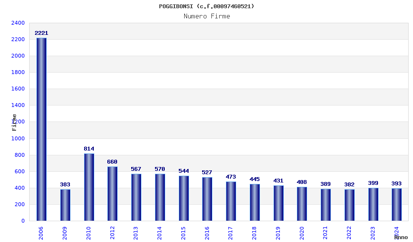 | Anno | Firme | Importi | Media | Naz. | Reg. | Prov. | Comu. |