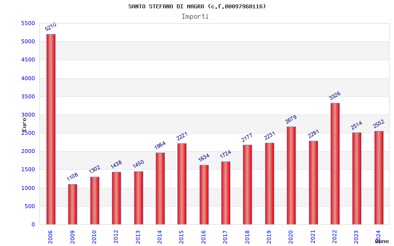 | Anno | Firme | Importi | Media | Naz. | Reg. | Prov. | Comu. |
