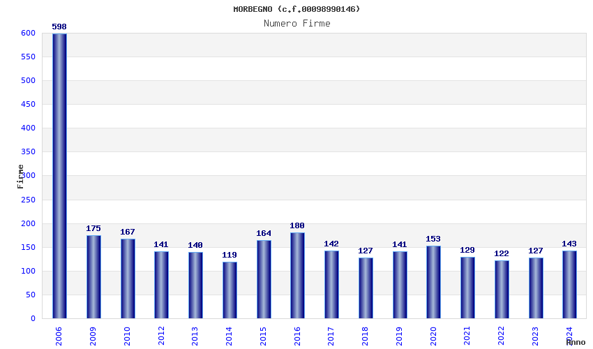 | Anno | Firme | Importi | Media | Naz. | Reg. | Prov. | Comu. |