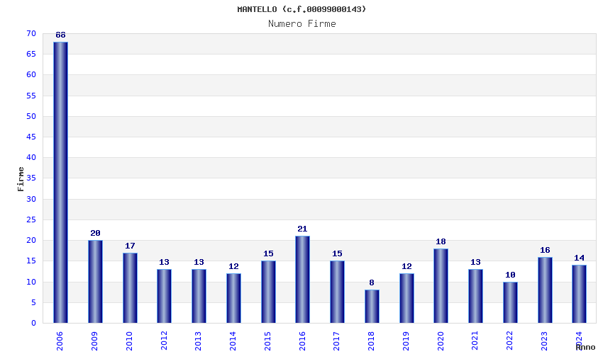 | Anno | Firme | Importi | Media | Naz. | Reg. | Prov. | Comu. |