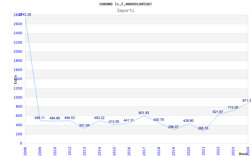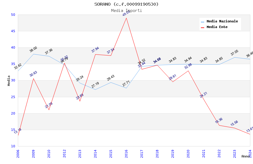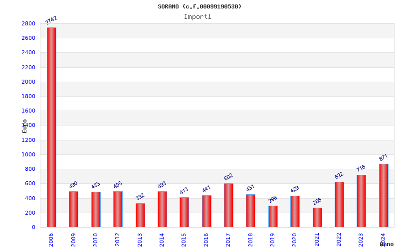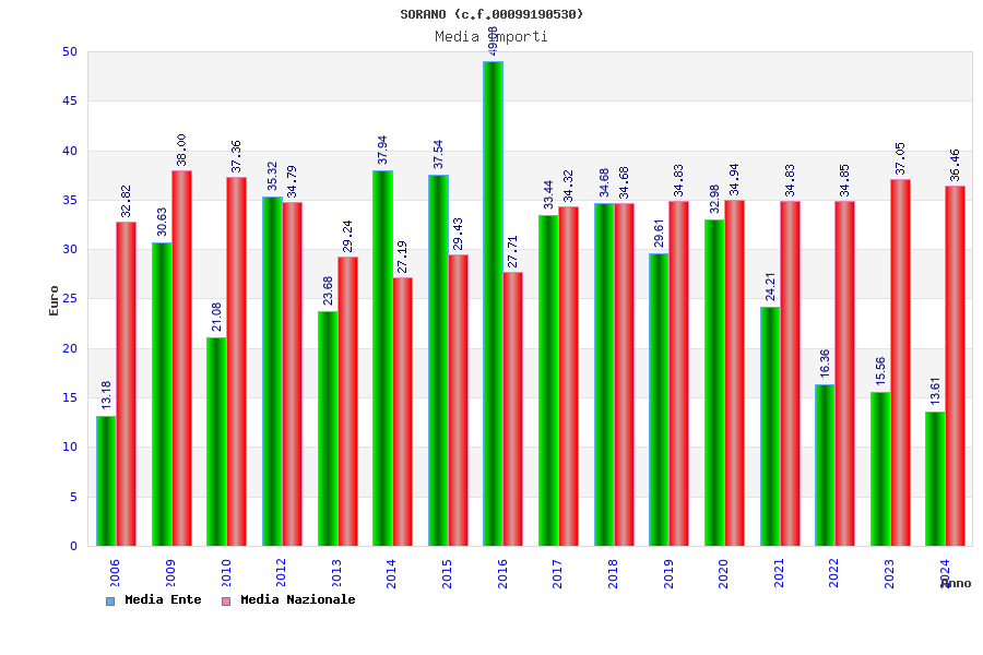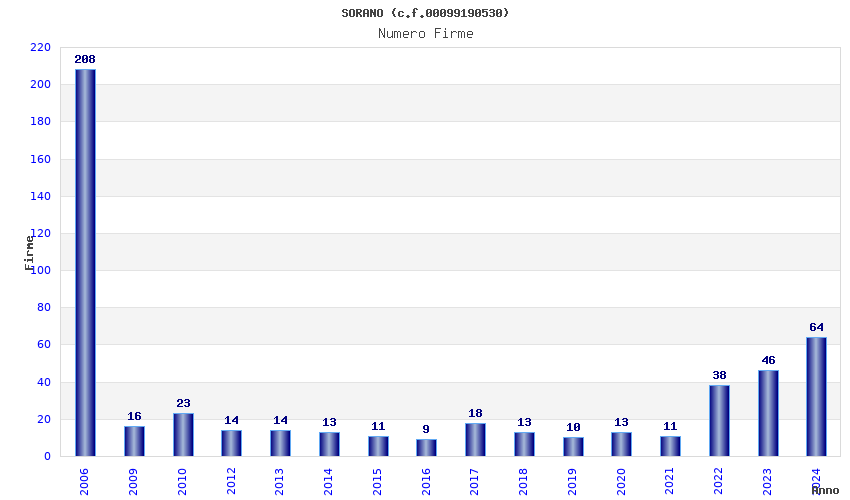 | Anno | Firme | Importi | Media | Naz. | Reg. | Prov. | Comu. |